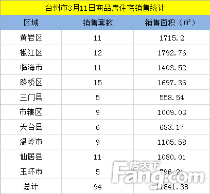 头条推荐【数说台州房产】3月11日房天下台州楼市日报:台州94套成交