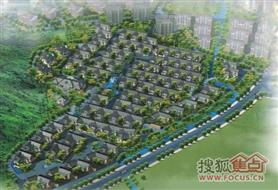 主要庭院式连体底层住宅,局部布置高层。依灵江山往东而下布置连廊式底层住宅。原来靠近振兴路局部低洼地块布置大面积地下车库。在地块北侧布置三栋中高层住宅,地块东侧接振兴路在北侧布置主要入口,南侧布置次要入口。小区主要道路环通,将整个小区划分成六块相对独立的组团。