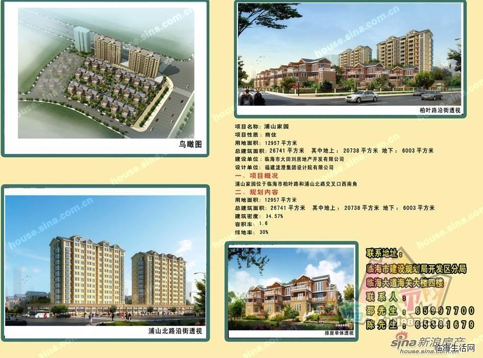 浦山家园项目位于台州临海市柏叶路与浦山北路交叉口西南角。  建设规模及内容概述:总建筑面积26674平方米(地上建筑面积20732.61平方米,地下建筑面积5941.39平方米),框架结构,1-6#三层,7.8#12层。