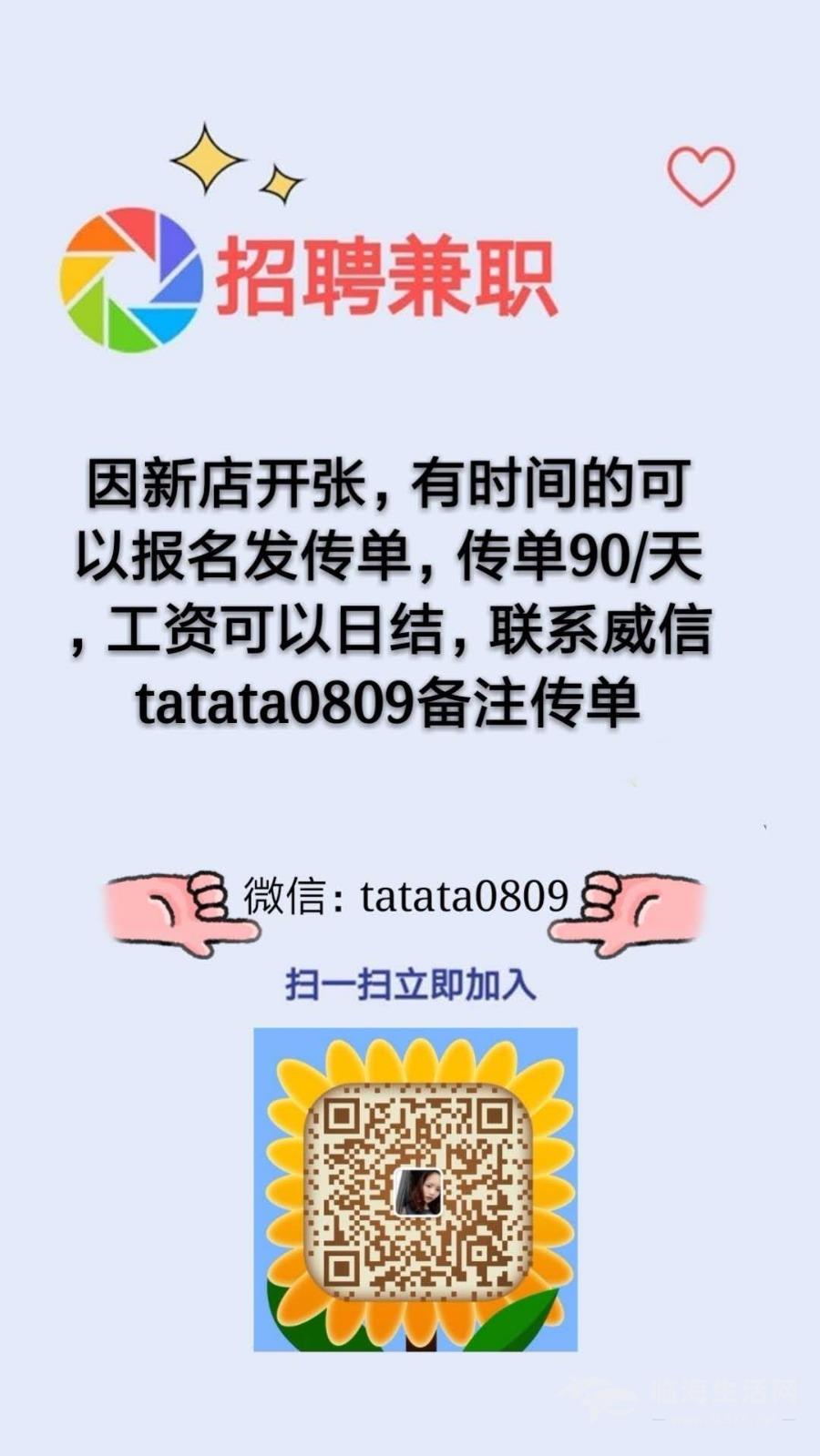 因新店开张,有时间的可以报名发传单,传单90/天联系威信tatata0809备注传单