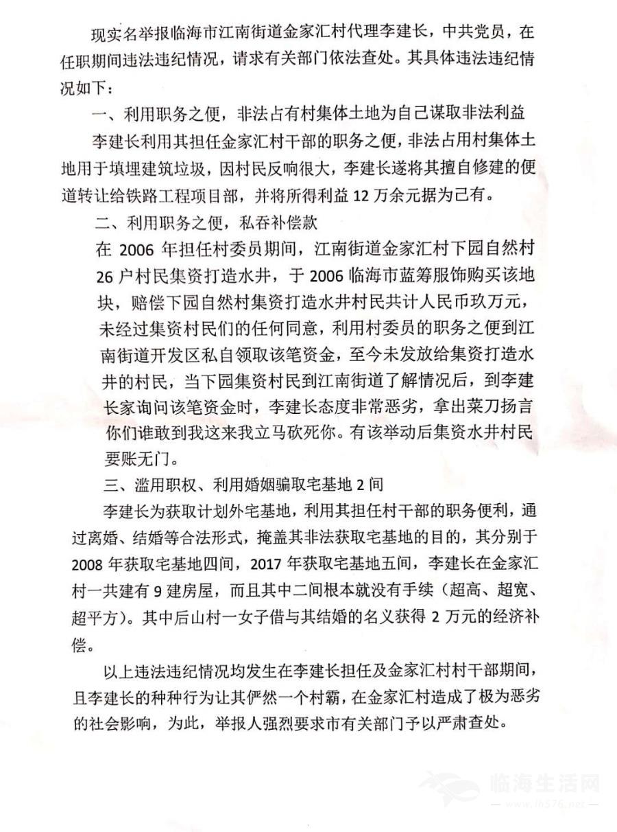 #临海杂谈#关于临海市江南街道金家汇村党员李建长在村里违法乱纪