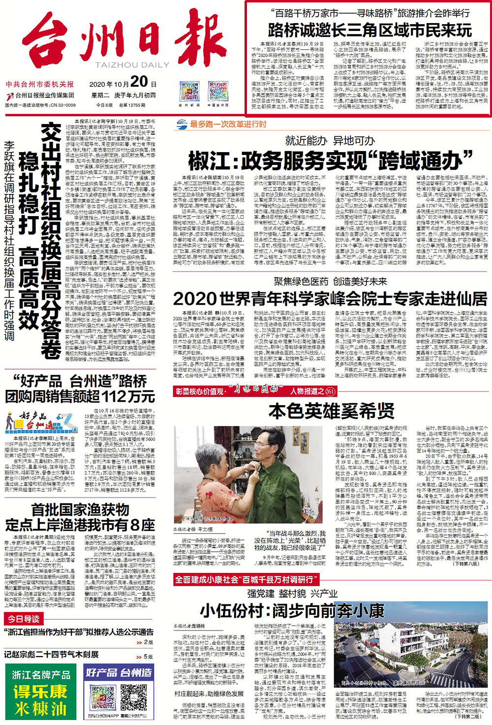 10月19日下午,“百路千桥万家市——寻味路桥”2020年路桥旅游长三角推介会在路桥举行。该活动也是路桥区“全面接轨大上海、深度融入长三角”十大行动的重要组成部分。