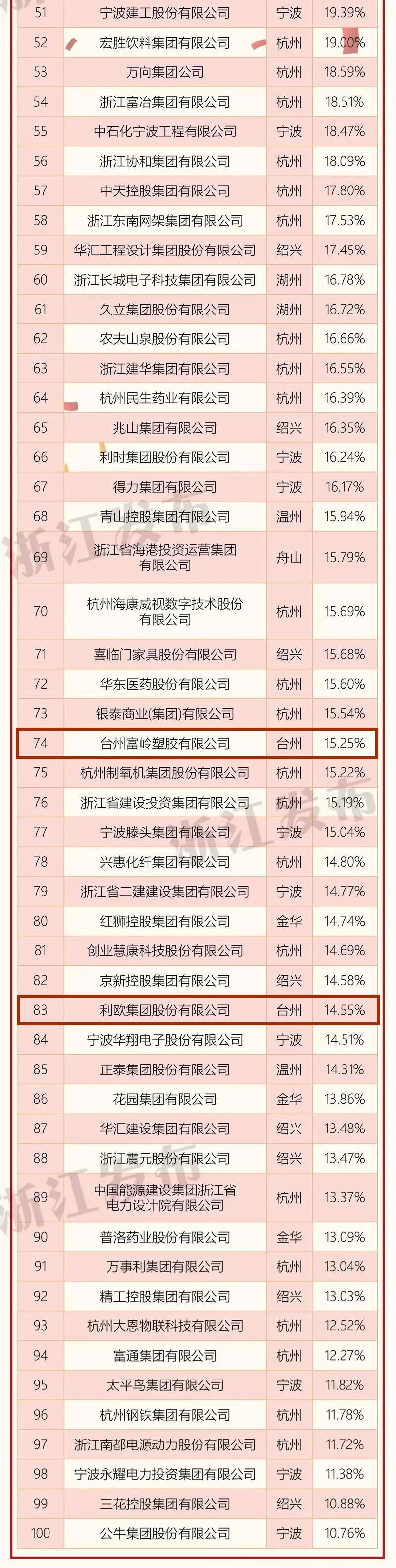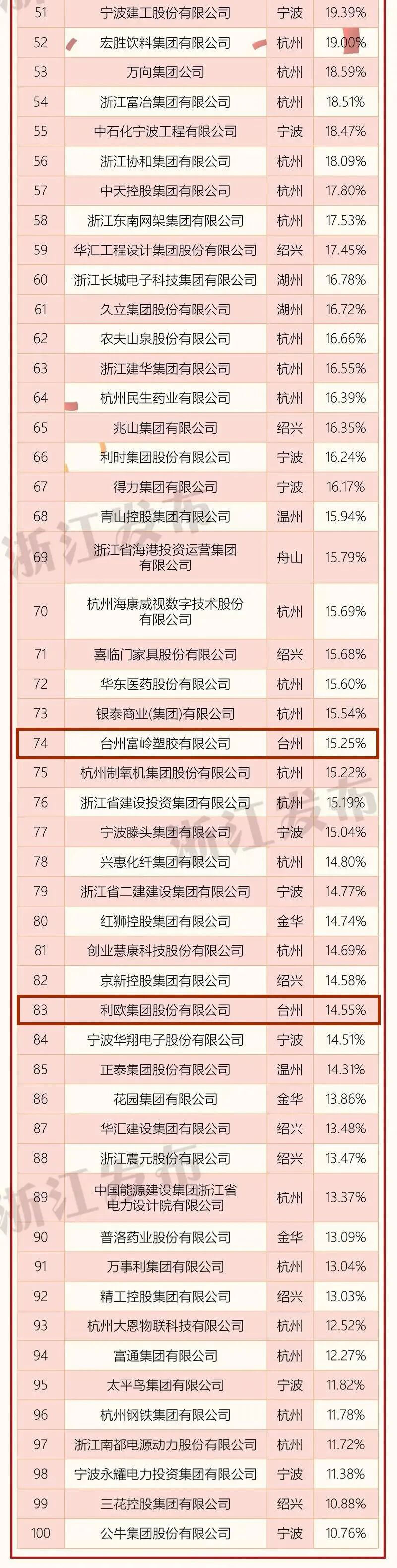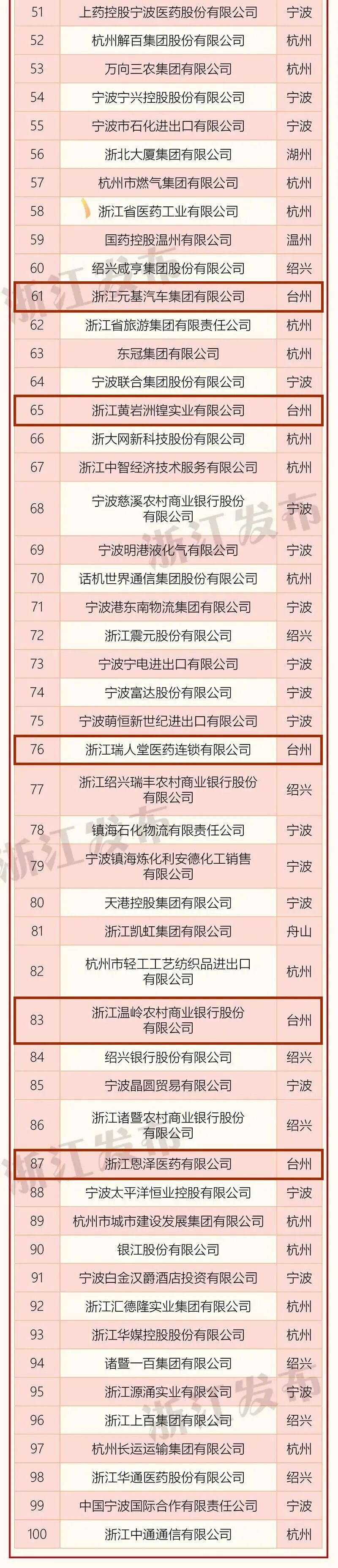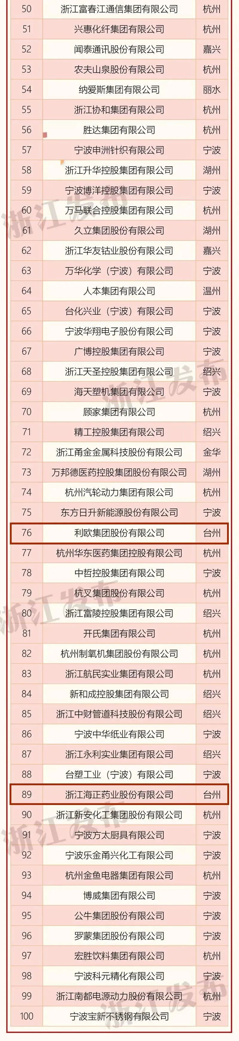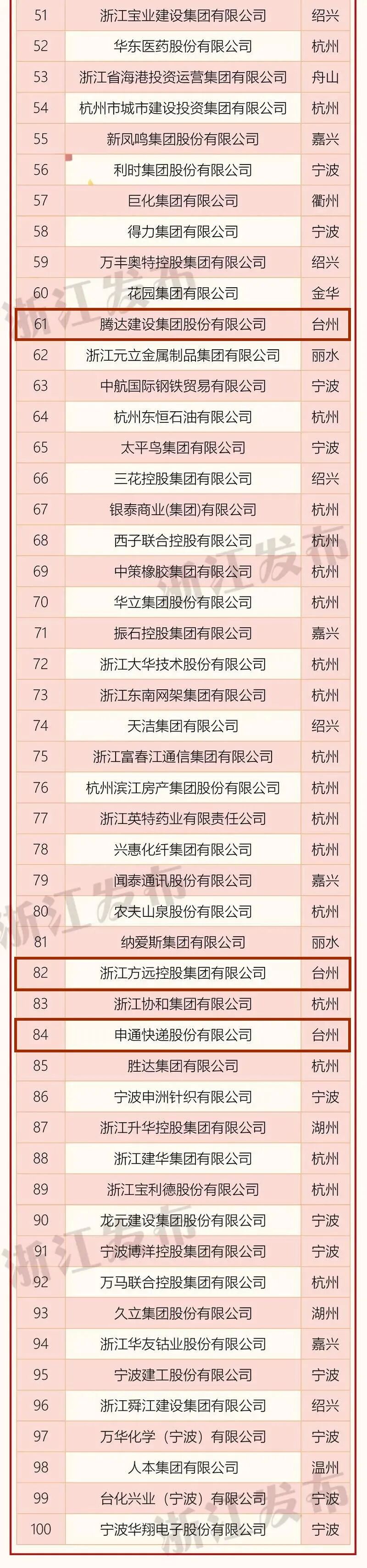 #临海杂谈#2020浙江省百强企业榜单出炉!台州比上年增加2家