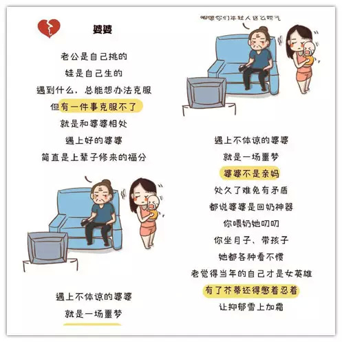 凡此种种,如果不曾经历,真的无法理解那种如野草般疯长的负面情绪!但小编毕竟还是幸运的,因为小编的老公是一位暖男,分担掉小编很多无法承担的压力。上文提到的那位抑郁的朋友因为有一位关心爱护自己的老公也走出雾霾,而邻居姐姐则因为老公的调解最终和婆婆解开了心结……