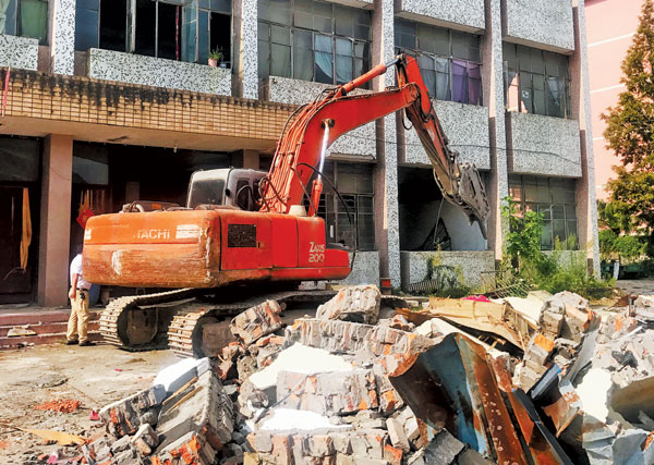 8月9日,回浦实验小学运动场工程现场,大型挖机正在对地上物进行拆除。回浦实验小学运动场问题是我市创建省教育现代化市的难点。今年以来,古城街道以“百大项目、百团攻坚”行动为抓手,全力以赴,克难攻坚,东湖村村“两委”发挥“古城铁军”精神,积极配合,主动作为,在两个月时间顺利完成19家企业、商户的搬迁工作,解决了东湖村下属丝织三厂、羊毛衫厂80多名职工的政策处理,为地上物拆除扫清了障碍。据悉,该项目地上物拆除完毕后,将新建200米塑胶运动场、篮球场、排球场及附属设施,进一步改善回浦实验小学的办学条件。 谢 希摄